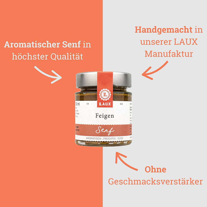 Der LAUX Feigensenf schmeckt so harmonisch nach der feinen Süße und vollen Frucht sonnengereifter Feigen.