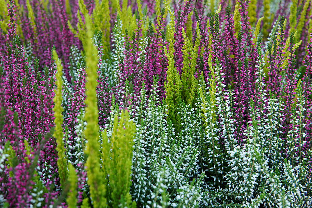 Die Winterheide (Erika) trotzt der Kälte und die verschiedenen Sorten lassen sich zu farbenfrohen Blütenteppichen kombinieren.