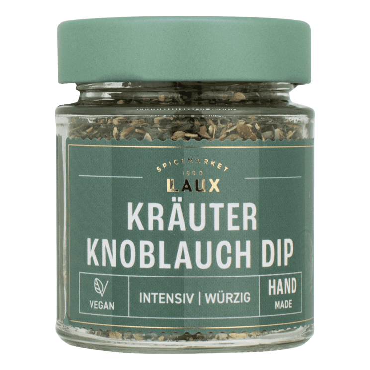 Zubereitung: 2 Teelöffel Kräuter-Knoblauch Dip mit etwas heißem Wasser aufgießen, mit 100 g Crème fraîche verrühren und 15 Min. ziehen lassen. Mit etwas fein gehackter oder geraspelter Salatgurke verfeinern.